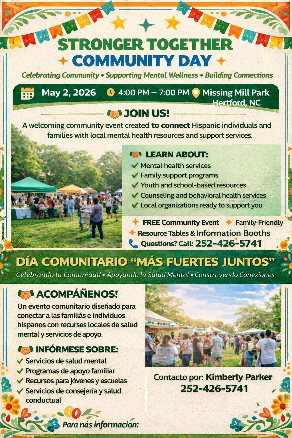 Día Comunitario “Más Fuertes Juntos” – Celebrando la Comunidad, Apoyando la Salud Mental, y Construyendo Conexiones.